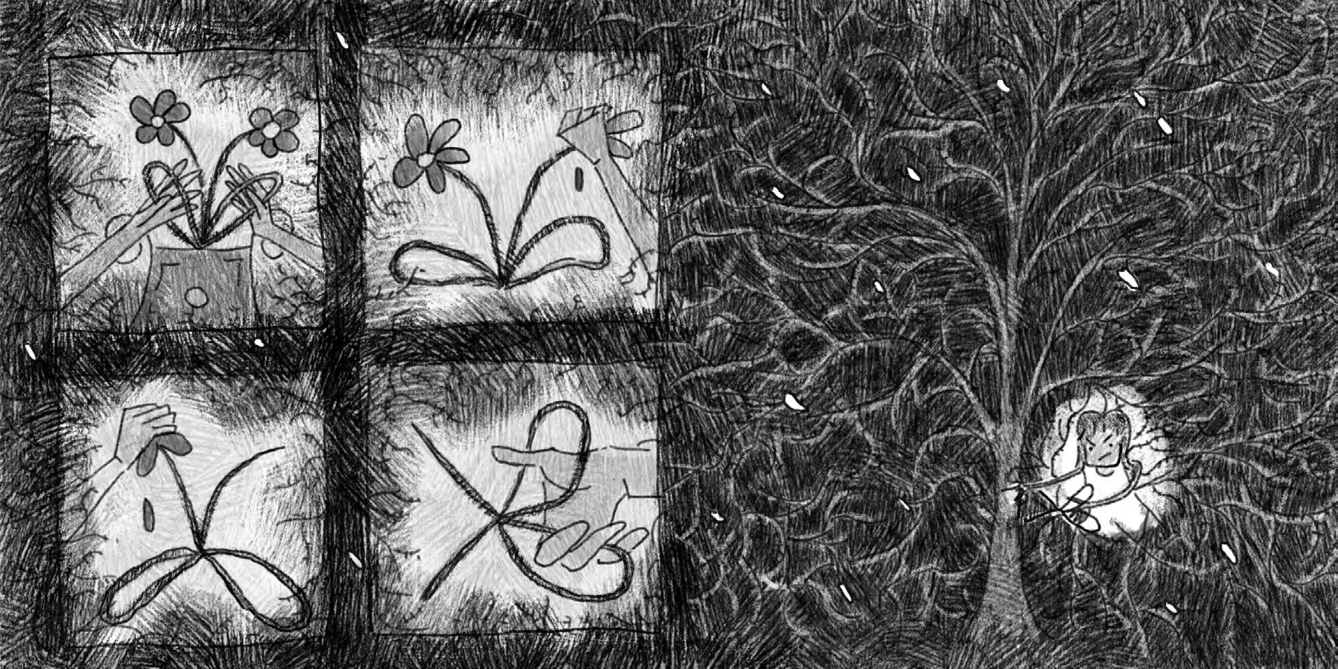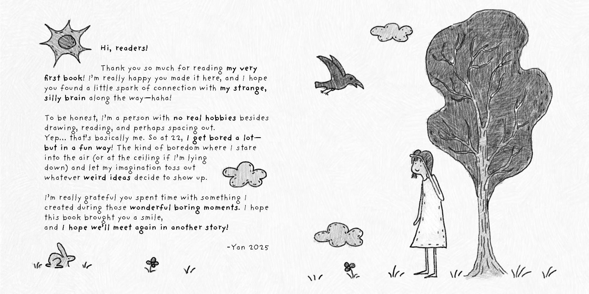"I'm Bored" is a wordless comic book that follows a girl who feels unfulfilled and obviously, bored until a surreal adventure teaches her that happiness lies in uncertainty, curiosity, and stepping outside her comfort zone.