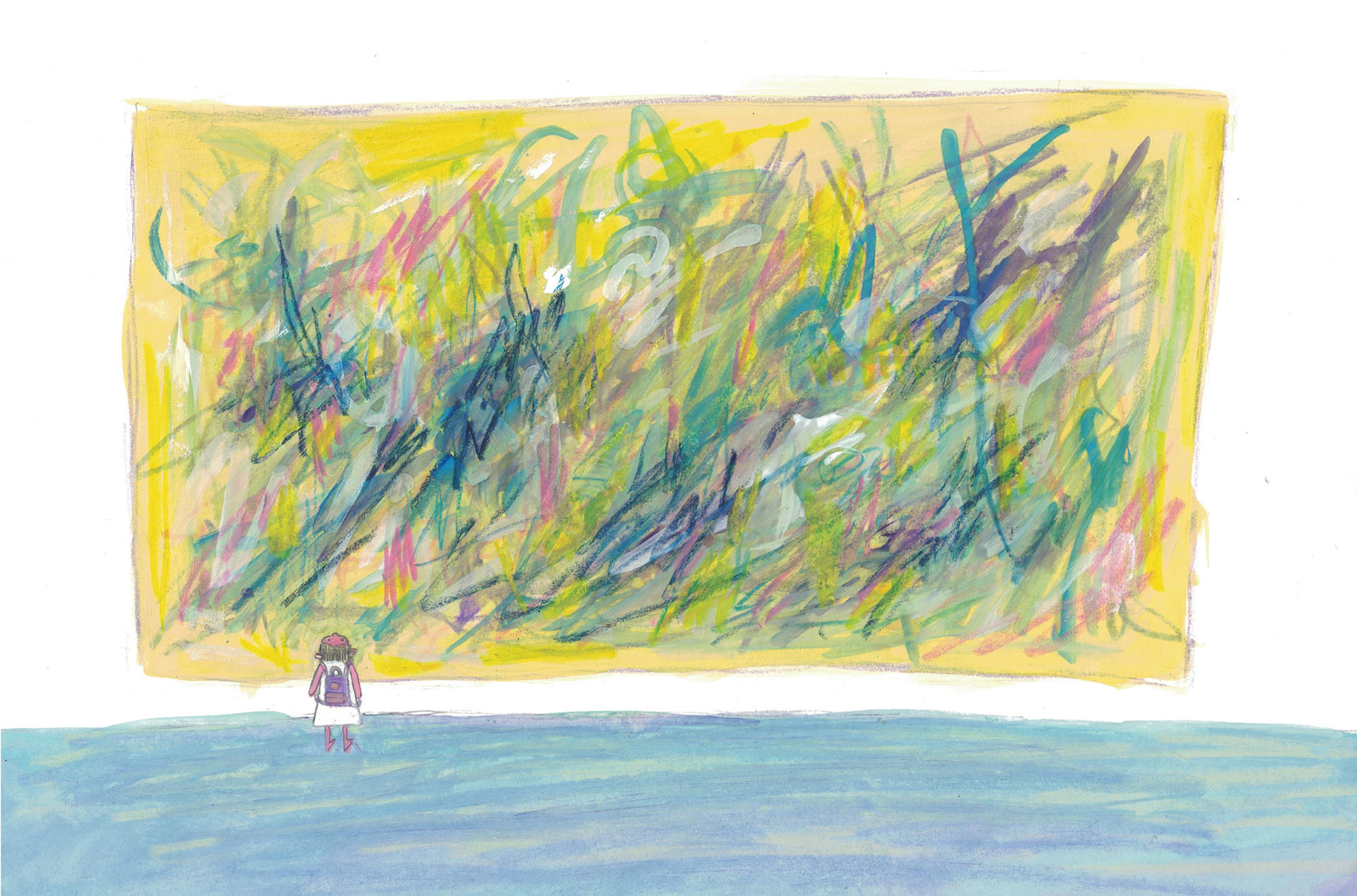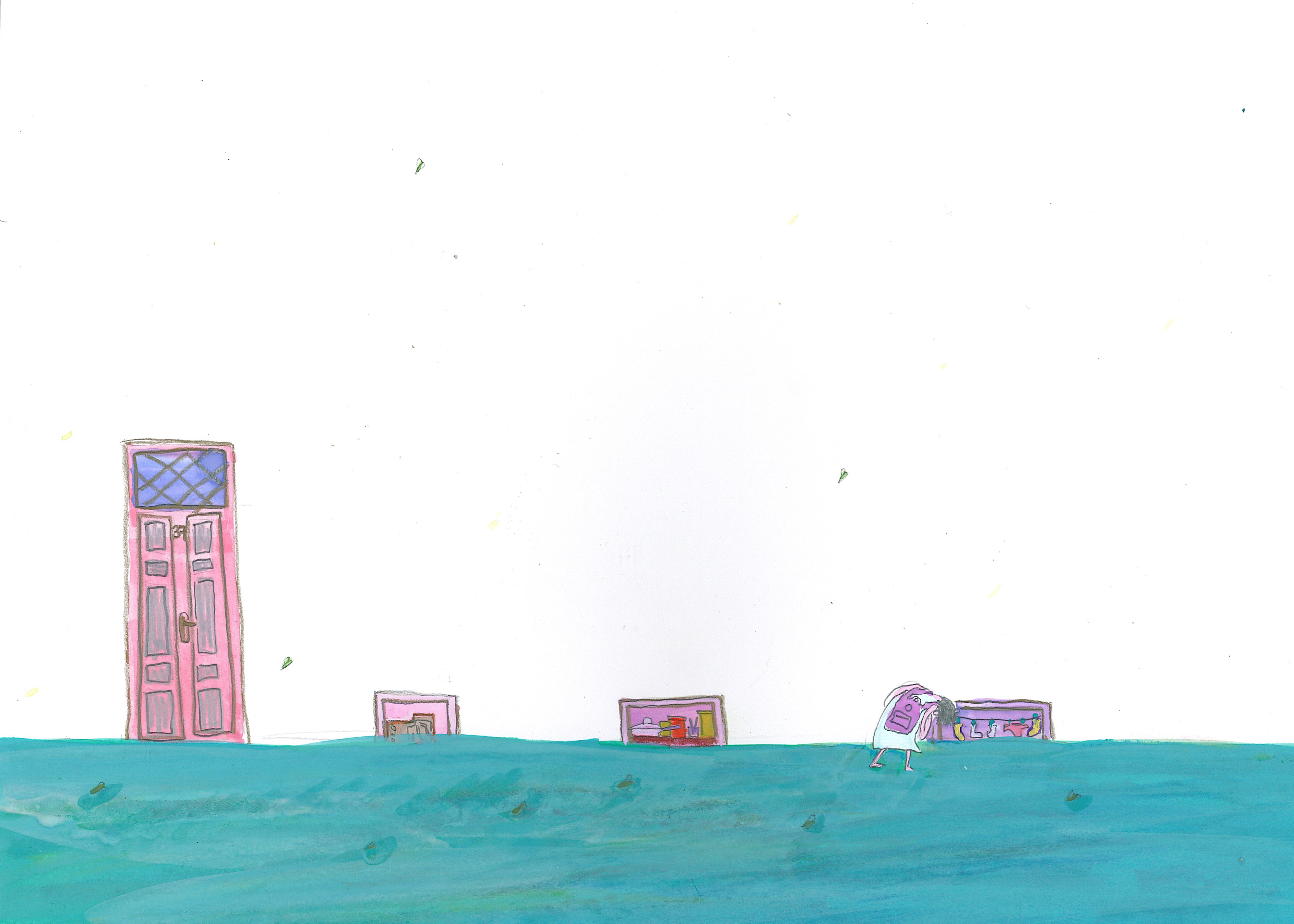 The girl moves quietly from one frame to the next, once again.